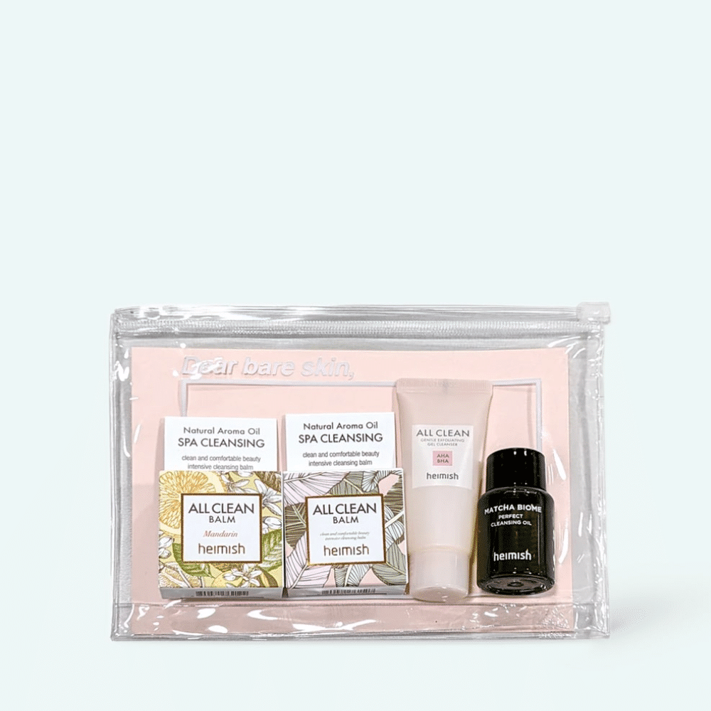 Koristite Heimish Cleansing Kit kao deo svoje dnevne rutine čišćenja. Prvo nanesite ulje za čišćenje na suvo lice i lagano masirajte u kružnim pokretima da biste uklonili šminku i nečistoće. Zatim, koristite gel za čišćenje da temeljno očistite kožu i odstranite ostatke šminke. Na kraju, nanesite tonik na pamučnu blazinicu i pređite po licu kako biste završili proces čišćenja i pripremili kožu za sledeće korake.