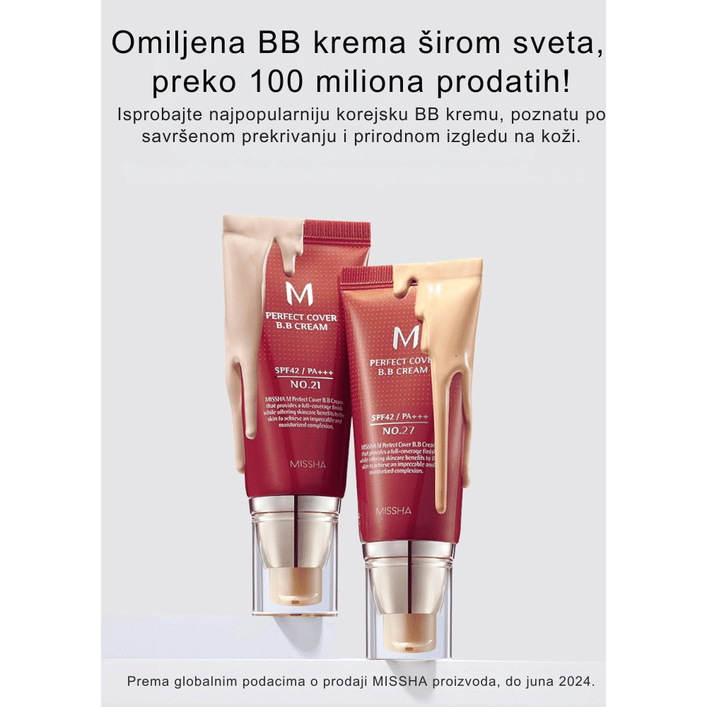 Missha je korejski kozmetički brend poznat po visokokvalitetnim proizvodima za negu kože i šminku, koji kombinuju efikasnost sa pristupačnim cenama. Osnovan je 2000. godine, a brend je deo Amorepacific grupe, jedne od najvećih korejskih kozmetičkih kompanija. Missha nudi širok asortiman proizvoda, uključujući BB kreme, serume, esencije i maske. Njihova popularna linija "Time Revolution" sadrži proizvode sa fermentisanim sastojcima koji pomažu u obnovi kože i borbi protiv starenja. Brend je poznat po svojim BB kremama, kao što je "M Perfect Cover BB Cream", koja pruža srednje do visoko prekrivanje, dok istovremeno hidrira kožu i štiti je od UV zračenja. Missha se ističe posvećenostšću kvalitetu i inovacijama, nudeći proizvode koji zadovoljavaju različite potrebe potrošača.