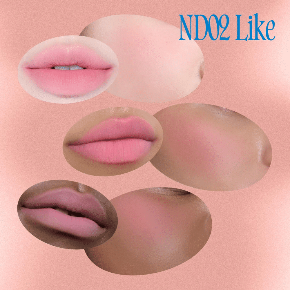 Nijansa ND02 Like je svetla, prirodna breskva koja pruža svež i blistav izgled usnama i obrazima. Idealna je za postizanje prirodnog, mladalačkog efekta sa minimalnim naporom, dok boja dodaje živahnost bez previše intenziteta. Formula je obogaćena glicerinom i uljem jojobe, koji dodatno hidrira kožu i održavaju je mekom tokom celog dana.