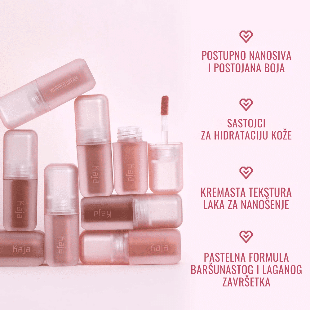 Savršen za svakodnevni makeup ili posebne prilike, KAJA Whipped Dream 03 Rose Macaron omogućava višenamensku upotrebu i besprekorno se prilagođava svim tonovima kože. Lako ga nanesite na usne za prirodno definisanje ili na obraze za svež, rumen efekat.