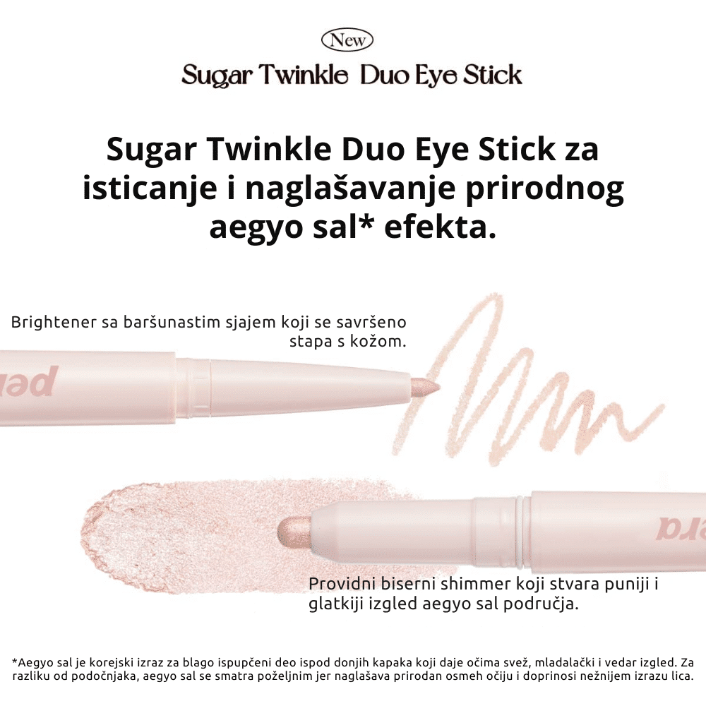 Tekstura oba dela stika je lagana, kremasta i lako se nanosi. Formulacija je dizajnirana da traje tokom celog dana bez da se razmazuje ili zgužva, dok svetlucavi deo ne trusi se i ostaje na mestu. Peripera Sugar Twinkle Duo Eye Stick je savršen za one koji žele brzo i efikasno oblikovanje očiju i područja ispod očiju.