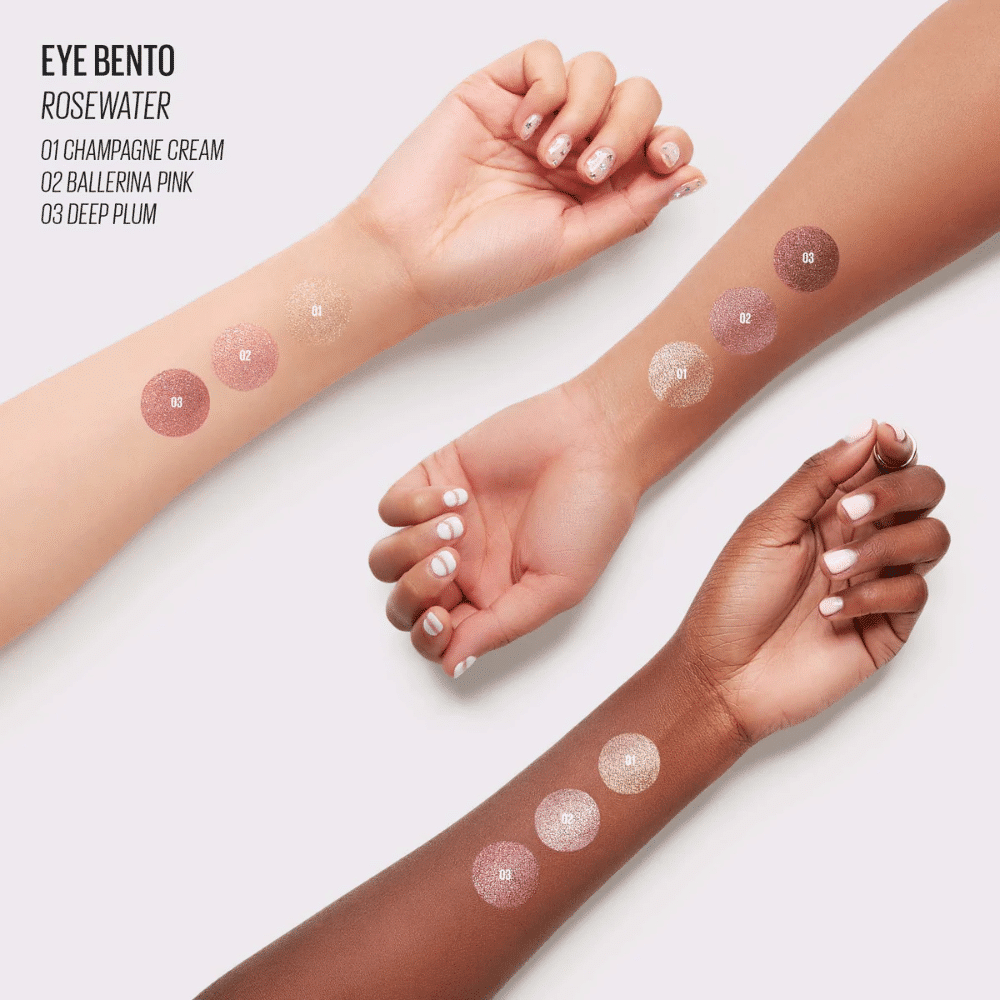 KAJA Paleta senki Beauty Bento 01 Rosewater pruža tri savršeno usklađene nijanse koje se lako blendaju i omogućavaju kreiranje različitih makeup izgleda. Njene svilenkaste, svetlucave formule osiguravaju dugotrajnu postojanost bez nakupljanja u pregibima kapaka. Idealna je za kreiranje dnevnog, suptilnog izgleda ili intenzivnog večernjeg stila.