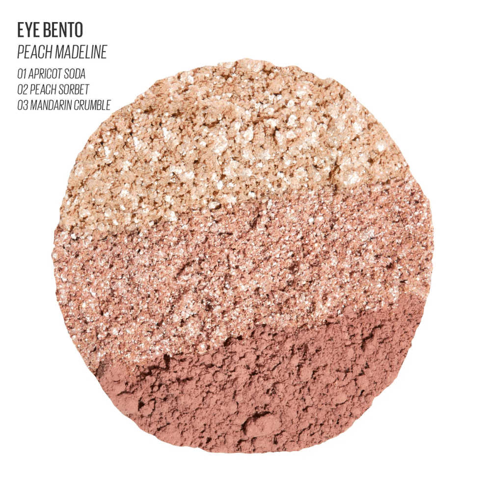 Trio paleta senki Peach Madeline sa mat i svetlucavim breskvastim nijansama pruža lako blendanje i dugotrajnu postojanost za svaki dan.