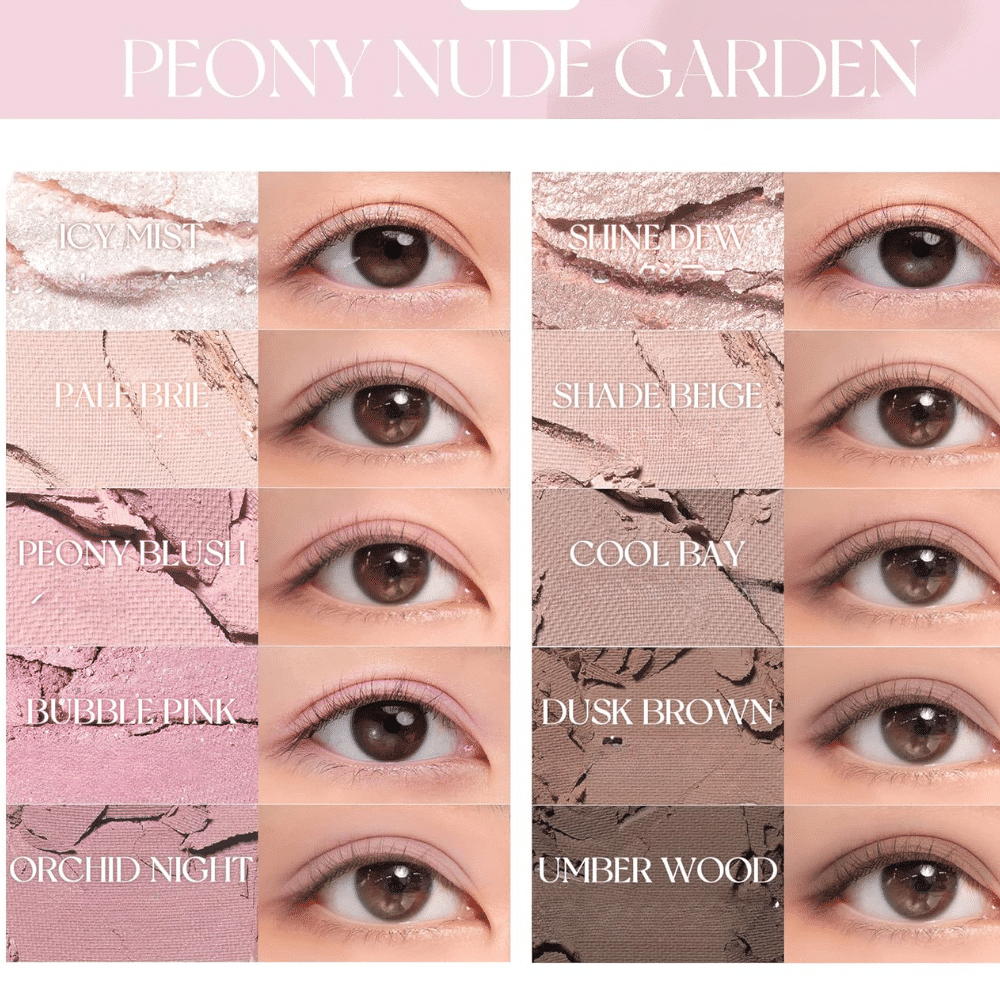 Nijansa Peony Nude Garden pruža nežne i sofisticirane tonove inspirisane prirodnim peonijama, koji osvetljavaju oči i ističu njihovu lepotu. Formula je obogaćena finim pigmentima i svilenkastom teksturom, što omogućava glatko nanošenje, lako blendanje i dugotrajnu postojanost bez trusenja.