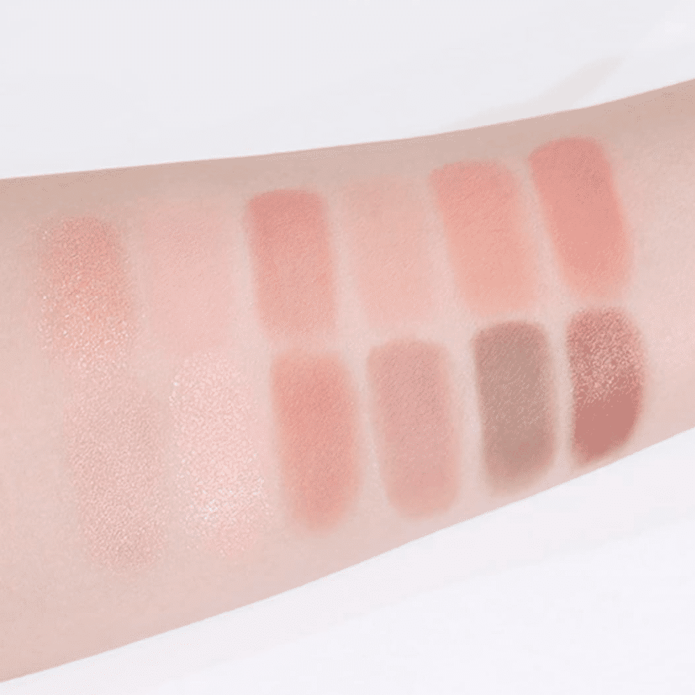 Paleta senki sa 12 toplih nijansi breskve i korala sa mat, šimer i gliter završnicama, pruža dugotrajan i blistav izgled očiju.