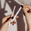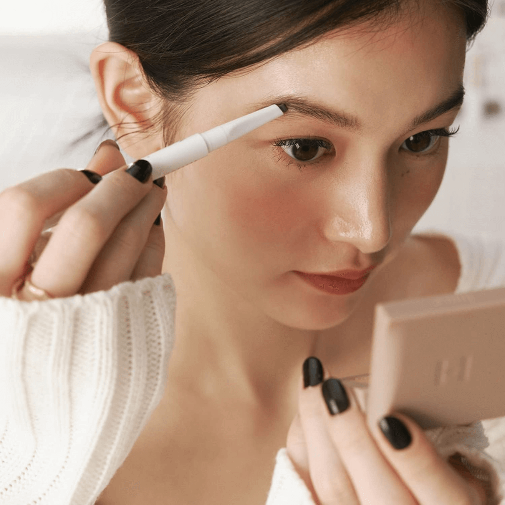 Postavite olovku pod uglom i lagano iscrtavajte prazna područja na početku obrva, prateći prirodni rast dlačica. Nastavite iscrtavanje prema repu obrva, koristeći lagane poteze za prirodan izgled. Nakon iscrtavanja, prođite ugrađenom četkicom kroz obrve kako biste ublažili linije i postigli besprekornu završnicu.