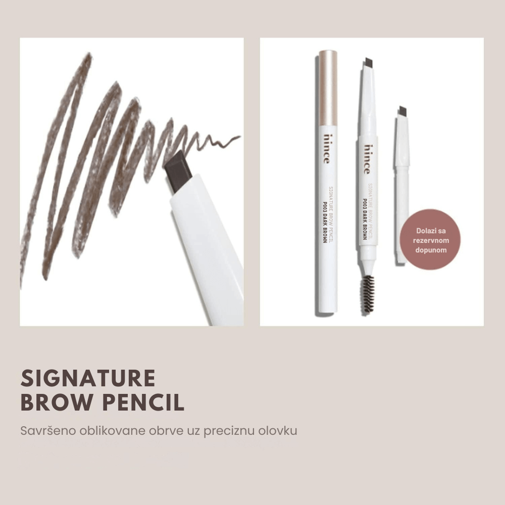 Hince Signature Brow Pencil P004 Natural Brown je olovka za obrve u prirodnoj smeđoj nijansi, dizajnirana za precizno iscrtavanje i definisanje obrva, pružajući im prirodan i sofisticiran izgled. Ultra-fina mina omogućava lako iscrtavanje pojedinačnih dlačica, dok ugrađena spoolie četkica pomaže u blendanju i postizanju besprekornog finiša. Formula je dugotrajna i otporna na razmazivanje, osiguravajući postojanost tokom celog dana.