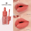 Mat karmin #03 Cartoon Coral pruža baršunasti finiš, laganu teksturu i dugotrajnu visoko pigmentovanu boju za negovane usne bez isušivanja.