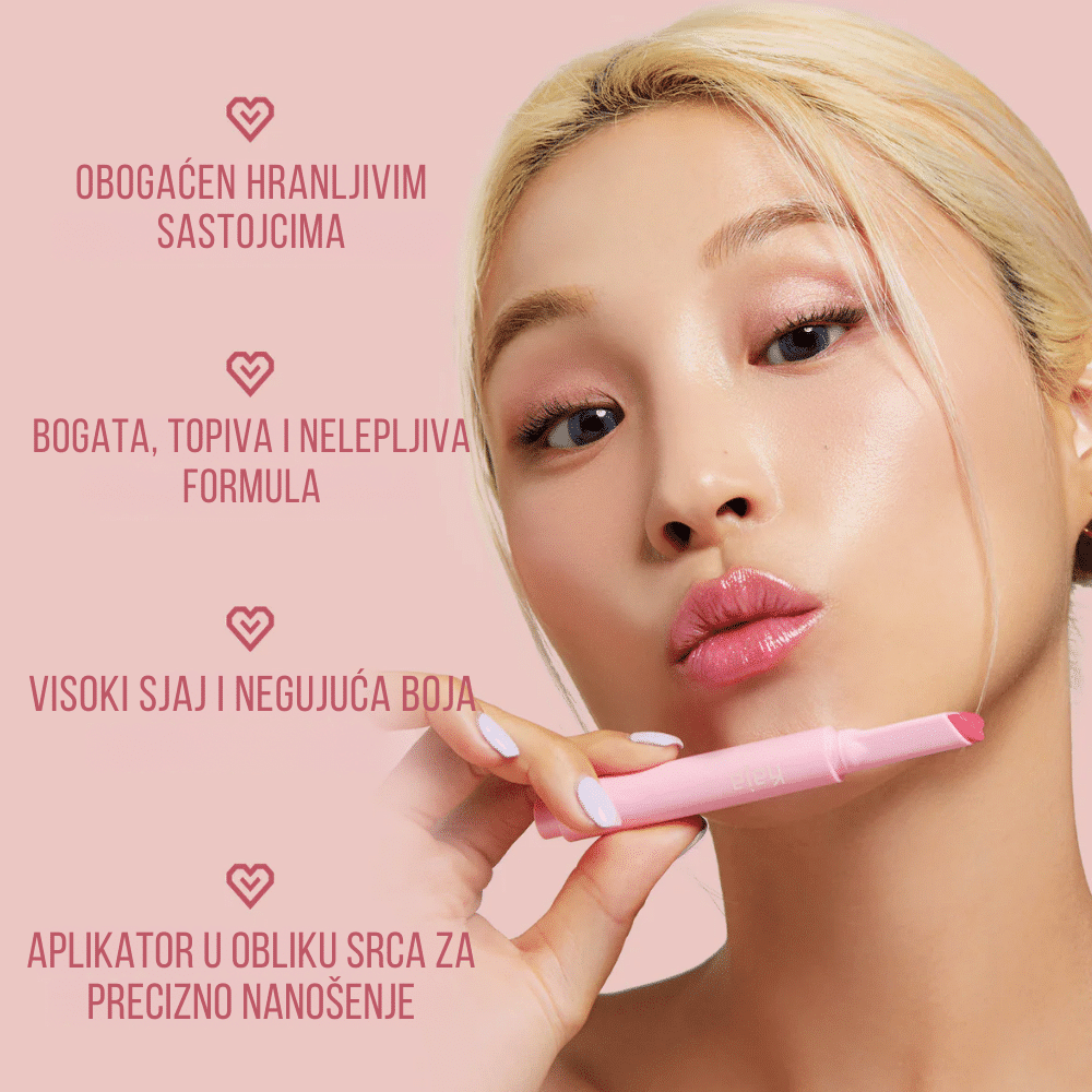 Kremasti ruž u obliku srca sa hidratantnim sastojcima i bogatom pigmentacijom za savršeno negovane crvene usne.